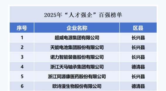 近日,湖州市委人才工作领导小组办公室联合市经济和信息化局发布湖州市2025年“人才强企”百强榜单,我会副理事长单位<超威电源集团有限公司>凭借卓越的人才引育体系、创新驱动实力及行业价值贡献力,荣登榜单首位。作为绿色能源领域标杆企业,超威集团深耕行业二十余年,始终秉持“人才为核心竞争力”的发展理念,实施“企业家培育计划”,构建“人才在哪里,平台就延伸到哪里”的生态体系,通过完善“引才、育才、留才、用才”全链条机制,持续夯实企业高质量发展根基。