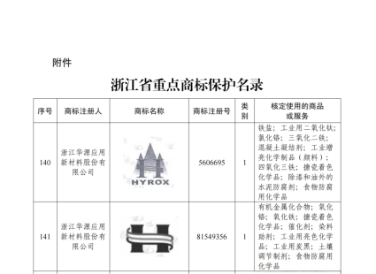 近日,浙江省市场监督管理局公布2025浙江省重点商标保护名录,我会理事单位<浙江华源应用新材料股份有限公司>名下两大核心商标成功入选。作为全球颜料行业的领军企业,华源新材始终将品牌建设作为企业发展战略核心之一,凭借雄厚的技术实力和严格的质量管理体系,在业界树立了卓著的品牌声誉。