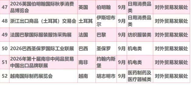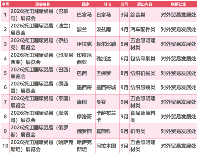 【浙江商务厅】2026年第一批浙江省商务展会目录发布