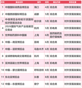 为推进高水平对外开放,建设高能级开放强省,发挥好展会拓市场、增订单积极作用,浙江省商务厅会同各市及相关单位研究确定了2026年度第一批商务展会目录,2026年前三季度拟重点举办和支持的展会项目共294个,本期将重点介绍自办类展会和重点类展会。
