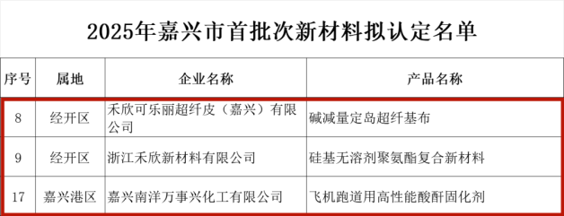近日,嘉兴市经济和信息化局发布《2025年度嘉兴市首批次新材料拟认定名单》,对18项拟认定的新材料进行公示。我会理事单位<浙江禾欣新材料有限公司>、会员单位<禾欣可乐丽超纤皮(嘉兴)有限公司>、会员单位<嘉兴南洋万事兴化工有限公司>等多家单位的新材料产品成功入选该名单,展现了会员企业在新材料领域的创新活力与研发实力。未来,我会将持续关注会员单位发展需求,搭建高效交流合作平台,协同推动新材料产业创新生态建设,助力会员单位在高质量发展道路上再创佳绩。