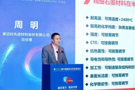 11月24日,第二十二届中国国际半导体博览会(IC China 2025)在北京国家会议中心隆重开幕。我会理事单位<赛迈科先进材料股份有限公司>作为先进材料领域的深耕者,受邀出席展会核心论坛——集成电路硅材料产业链协同创新论坛。公司总经理周明作题为《集成电路用高质量高稳定性石墨材料及关键构件技术进展》的专题报告。当前我国半导体产业正处于“十五五”规划开局的关键节点,面临着产业链协同创新、国产替代加速的重要机遇。赛迈科表示将持续聚焦国家战略需求,加大研发投入,在半导体用特种石墨材料领域不断突破技术瓶颈,为我国集成电路产业高质量发展提供坚实“材料支撑”。