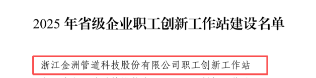 近日,浙江省总工会公布了 2025 年“浙江省企业职工创新工作站建设名单”,我会理事单位<浙江金洲管道科技股份有限公司>职工创新工作站凭借在管道生产工艺优化及管道材料创新的突出表现,成功入选(全省仅30家)。金洲管道职工创新工作站始终秉持“问题导向、攻关赋能”的建设理念,在焊接自动化、防腐涂层工艺等关键领域取得多项突破性成果,有效驱动企业提质增效。此次入选是对企业长期深耕技术创新与技能人才培养的高度肯定。企业将以此为新起点,持续放大工作站示范引领效应,全面激发职工创新活力,为高质量发展注入持久动力。