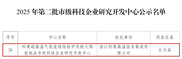 12月8日,湖州市科技厅正式公示“2025年第二批市级科技企业研究开发中心认定名单”,旨在遴选一批创新能力高、研发体系完善、产业带动作用显著的企业研发机构。我会会员单位<浙江科奥高温技术集成有限公司>组建并运营的“科奥超高温气氛连续烧结炉及耐火陶瓷制品市级科技企业研究开发中心”成功入选,成为本批次中新材料领域的代表性创新平台之一。该中心聚焦超高温材料制备工艺创新,已拥有多项自主知识产权和成果转化案例。此次认定是对科奥公司持续研发投入、深耕技术创新所取得成果的权威认可,也标志着企业在技术研发体系化、平台建设专业化方面迈上了新台阶。
