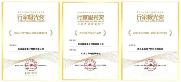 近日,“2025行家极光奖”颁奖典礼圆满落幕,数百家SiC&GaN企业代表共同见证了第三代半导体产业所引领的行业新篇章。我会会员单位<浙江晶瑞电子材料有限公司>凭借其在碳化硅(SiC)衬底领域的突出贡献,一举斩获“2025年度全球SiC衬底影响力企业”“2025年度全球化(出海)先锋企业奖”“2025年度优秀产品奖”三项大奖。晶瑞电子自成立以来,始终专注于大尺寸、高品质化合物半导体衬底的研发与产业化,依托“装备+材料”协同创新模式,攻克多项关键技术难题,已建成覆盖6至8英寸SiC衬底的规模化产线。此次荣获“优秀产品奖”的12英寸导电型SiC,成功解决了晶体生长中的温场不均、开裂等核心难题,引领行业迈入超大尺寸衬底新时代。未来,晶瑞电子将继续加大研发投入,优化产业布局,持续提升8-12英寸碳化硅与蓝宝石衬底的性能与产能,为全球绿色能源革命与可持续发展贡献关键力量。