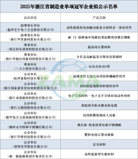 【会员新闻】我会多家会员单位入选2025年浙江省制造业单项冠军企业拟公示名单