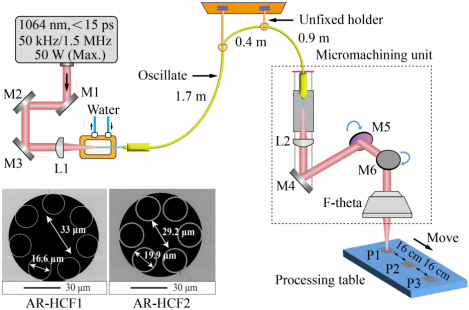 近日,我会理事单位<杭州光学精密机械研究所>罗素先进光波科学中心联合中国科学院上海光学精密机械研究所超强激光科学与技术全国重点实验室以及激光智能制造研发中心,在利用反谐振空芯光纤(AR-HCF)实现高功率皮秒激光高质量柔性传输与精密加工方面取得重要进展。相关研究成果以“High-quality delivery of high-power picosecond lasers in single-ring anti-resonant hollow-core fiber for micromachining”为题,发表于《High Power Laser Science and Engineering》。