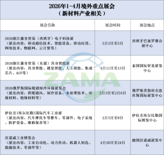 【浙江省商务厅】1-4月境外展会来啦!浙江企业请关注~ 微信“扫一扫”分享至朋友圈 分享: 打印本页 复制链接 相关文章 2026年全省经信工作会议在杭召开 【浙江省科技厅】2026年全省科技系统工作推进会召开 【工信部】原材料工业高质量发展谱新篇 新春展会齐发力!2026年一季度浙江有这些展会值得关注 支撑明年“开门稳、开门好、开门红” 浙江推出工业“稳增长十条” 【工信部】明确10项重点工作!2026年工信系统这样干 全国技术合同成交金额增幅达141.7% 我国科技成果转化实现量质齐升 工信部高质量办理重点督办建议 破局“人工智能+制造” 一批建议办理见成效