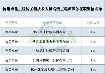 根据《浙江省职称评审管理实施办法》(浙人社发〔2020〕47号),经杭州市化工轻纺工程技术人员高级工程师职务任职资格评审委员会评审通过,浙江省经信厅与省人力社保厅于近日发布具有杭州市化工轻纺工程技术人员高级工程师职务任职资格名单,我会多家会员单位多人入选。