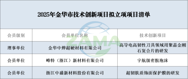 一、我会多家会员单位项目入选2025年金华市技术创新拟立项项目清单