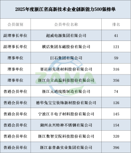 一、我会十余家会员单位入选2025年度浙江省高新技术企业创新能力500强