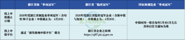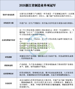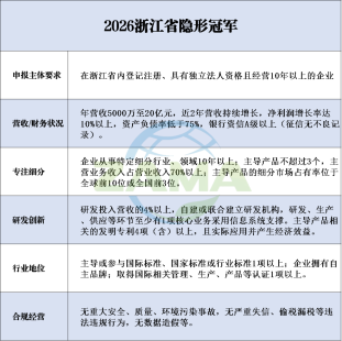 【浙政通】2026年度浙江省制造业“单项冠军”“隐形冠军”进入黄金申报期