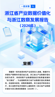 【浙江省经信厅】一图读懂《浙江省产业数据价值化与浙江数商发展报告(2026年)》 微信“扫一扫”分享至朋友圈 分享: 打印本页 复制链接 相关文章 【浙江省经信厅】浙江“415X”先进制造业集群:新增1条赛道、调整优化4条赛道 【杭州市经信局】中小企业AI自检神器来了!这款开源工具带你免费做“企业体检” 【国务院】关于产业链供应链安全的规定 【工信部】关于推广5G工厂典型应用实践的通知 【四部门】组织开展2025年度享受研发费用加计扣除政策的工业母机企业清单制定工作 【工信部】召开新材料领域中小企业圆桌会 浙江:培育世界级新材料产业集群 【工信部】聚焦两会:产业科技创新与“5G+工业互联网”,共筑制造强国新基石